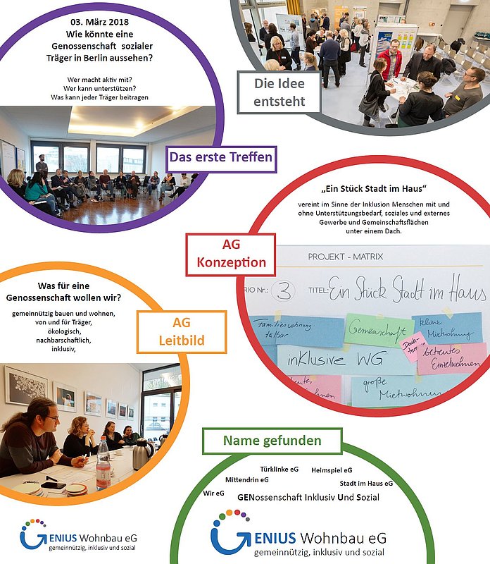 GENIUS wird dabei ein Grundkonzept verfolgen, welches das inklusive Zusammenleben im Gemeinwesen und – angesichts der Wohnungsknappheit in Berlin – die Wohnraumbeschaffung und Versorgung von benachteiligten Zielgruppen fokussiert. Dabei ist die Idee „Ein Stück Stadt im Haus“ richtungsweisend, die versucht, die Vielfalt der Stadtgesellschaft in einem inklusiven Wohnprojekt abzubilden. In den Gebäuden soll eine Mischung von körperlich und psychisch beeinträchtigten Menschen, von benachteiligten Jugendlichen aber auch anderen Wohnungssuchenden mit Wohnberechtigungsschein ein Zuhause finden.