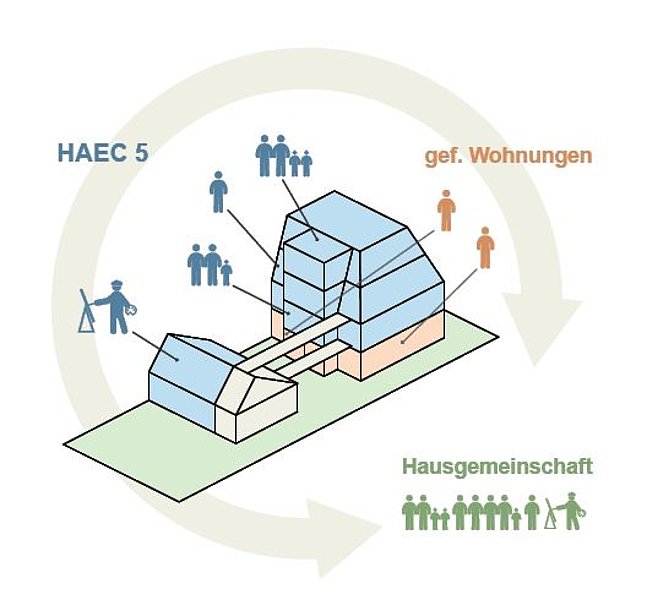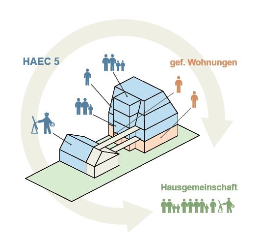 Die Baugemeinschaft HAEC5 GbR will in ihrem Projekt in der Häckelstraße 5 in Johannisthal (Treptow-Köpenick) 5 Wohnungen in Holzbauweise errichten. Davon können zwei geförderte 2-Raum-Wohnungen (mit jeweils 56 m², Terasse und Gemeinschaftsgrten) an einen sozialen Träger vermietet, bzw. dieser ggf. auch als Mitglied in die Baugemeinschaft aufgenommen werden.