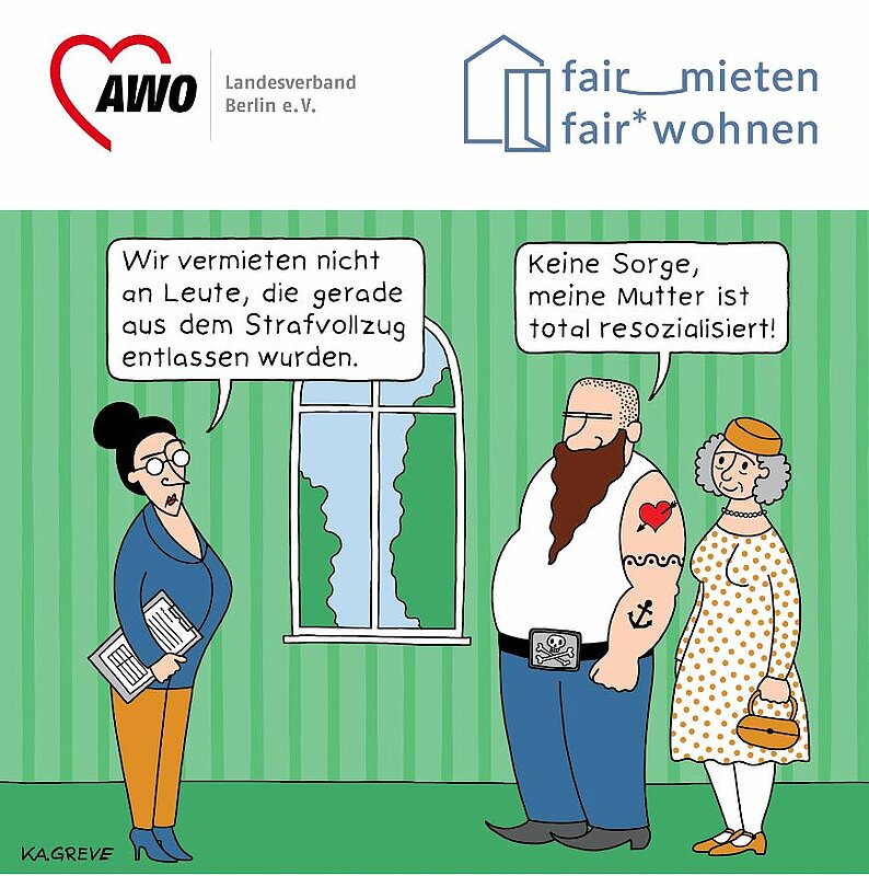 Um Hürden in diesem Bereich abzubauen braucht es aber eine breite Unterstützung, die über Politik und Verwaltung hinausgehen. Die Broschüre „Wohnen nach dem Strafvollzug“, die gemeinsam mit dem AWO Landesverband Berlin e. V. erstellt wurde, nimmt die Schwierigkeiten von Haftentlassenen bei der Wohnungssuche in den Blick. Beiträge aus der Justiz, Verwaltung und von unterstützenden Vereinen stellen unterschiedliche Perspektiven auf erlebte Benachteiligungen und die entscheidende Rolle der Wohnung für die ersten Schritte nach der Entlassung dar.